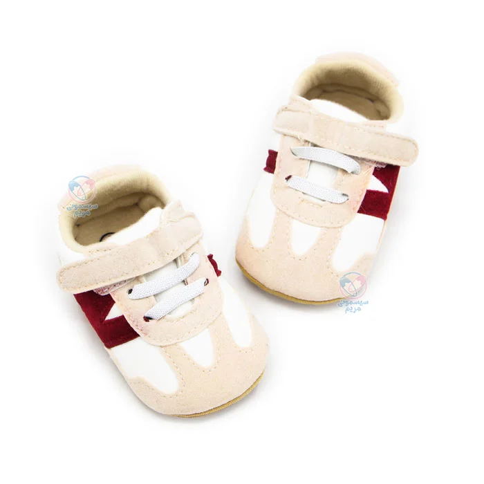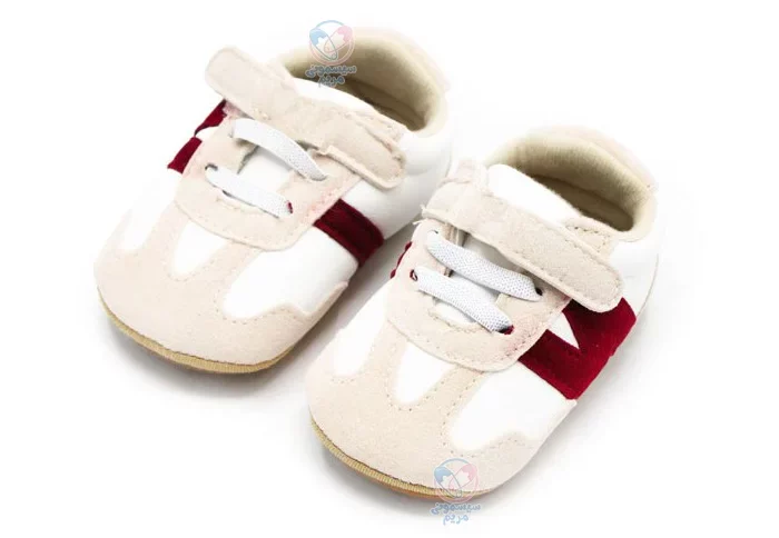 - بسته شدن چسبی آسان: استفاده از چسب در قسمت کناری کفش، باعث میشود والدین بهراحتی پاپوش را بپوشانند یا از پای کودک خارج کنند. همچنین چسبی بودن آن به تنظیم دقیقتر اندازه و اطمینان از فیکس شدن مناسب روی پا کمک میکند؛