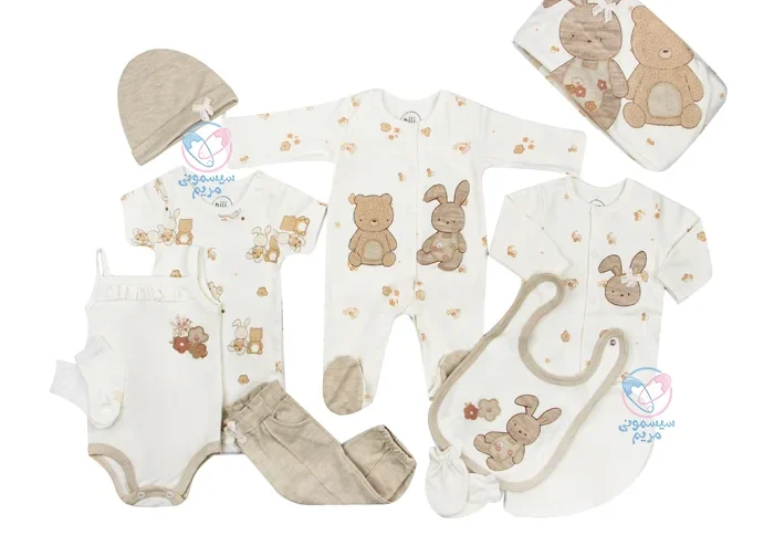 - شامل ۱۳ تکه ضروری، از جمله بادی آستین کوتاه، سرهمی، شلوار، مانتو، کلاه، جوراب، دستکش، رکابی، پتو، آروغگیر، پیشبند؛