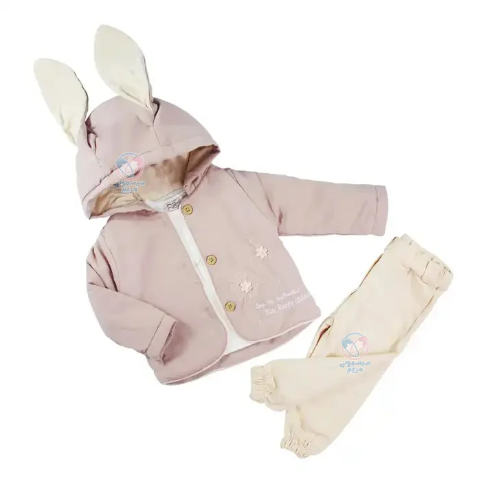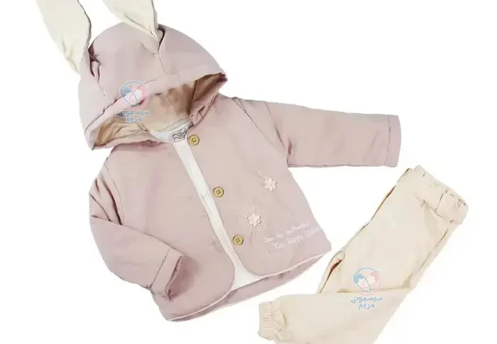 - این ست شامل 3 تیکه از جمله تیشرت آستین بلند، کت و شلوار است؛