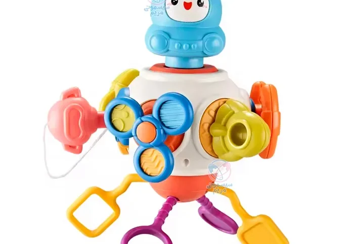 پنگوئنی که میتوان آن را بهصورت پیچ چرخاند و حس کنجکاوی و شگفتی را در کودک افزایش داد؛ - رنگهای شاد و جذاب: استفاده از رنگهای متنوع، حواس بینایی کودک را تحریک کرده و باعث افزایش تمرکز و شادی او میشود؛