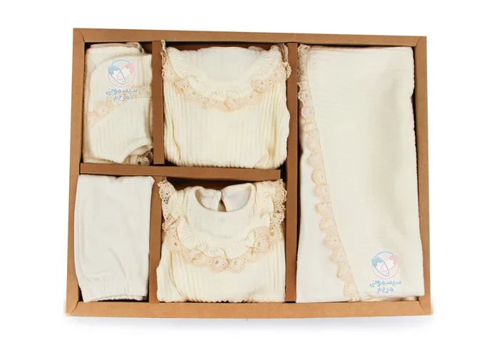 - شامل 10 تکه مختلف، مثل بادی آستین بلند، بلوز آستین بلند، پتو، پیشبند، دستکش، شلوار جورابدار، کلاه و مانتو است که نیازهای روزمره نوزاد را بهصورت کامل پوشش میدهد؛