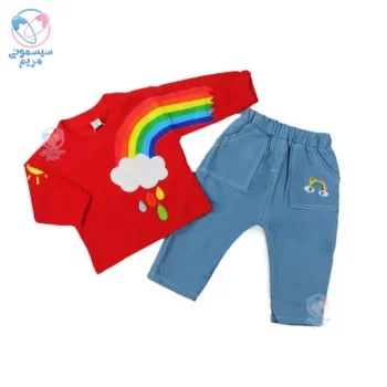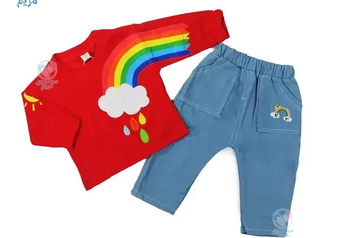 - این بلوز و شلوار با رنگ قرمز و طرح رنگینکمان بسیار زیبا است؛