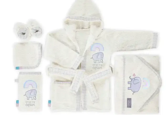 | سایر توضیحات | حوله تنپوش: 47*35 سانتیمتر، حوله دورپیچ 80*80 سانتیمتر، حوله دست و صورت 30*30 سانتیمتر، لیف 12*20 سانتیمتر، پاپوش 6*10 سانتیمتر |