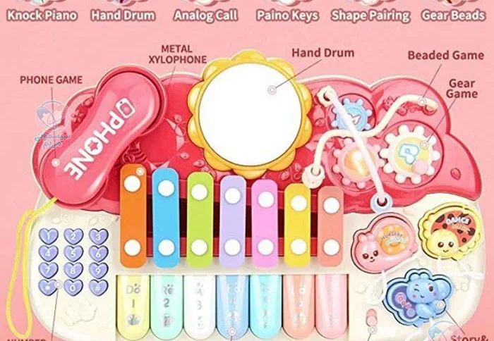 اسباببازی پیانو موزیکال چراغ دار سوببر، یک محصول منحصربهفرد است که با ترکیب اجزای موسیقی و بازی، کودکان را به دنیای جذاب و آموزنده موسیقی هدایت میکند. این اسباببازی شامل اجزای مختلفی از جمله پیانو، بلز، تلفن و صفحه کلید، درام، چرخدنده و… است. بهعلاوه این محصول مجهز به عروسک کفشدوزکی موزیکال و عروسک حلزون قصهگو است.