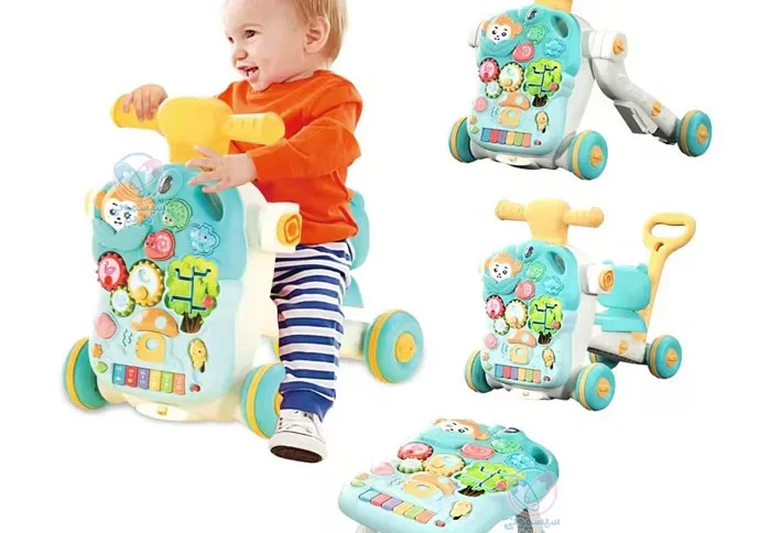 واکر ۴ کاره با طراحی جذاب و رنگهای شاد، توجه کودکان را به خود جلب میکند. کودکان میتوانند با استفاده از دستههای قابل تنظیم، واکر را هل دهند یا با تبدیل آن به سهچرخه یا اسکوتر، مهارتهای حرکتی خود را تقویت کنند.