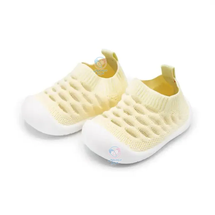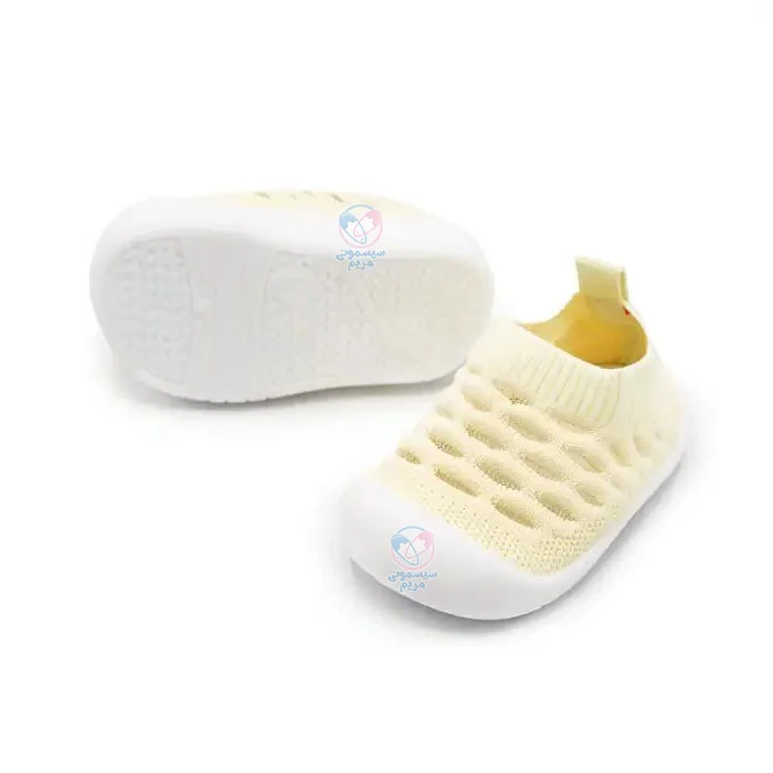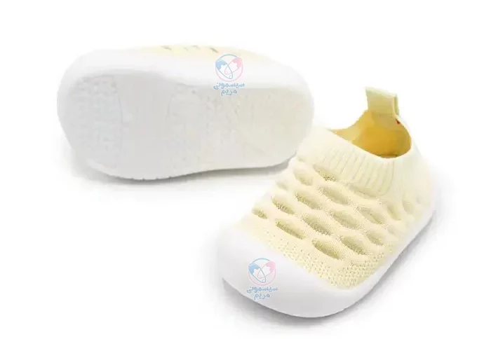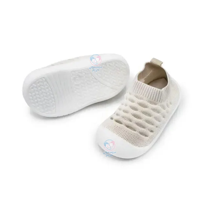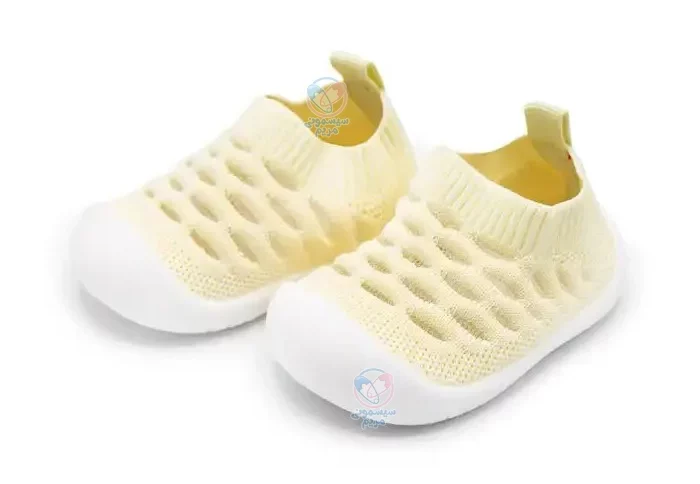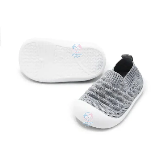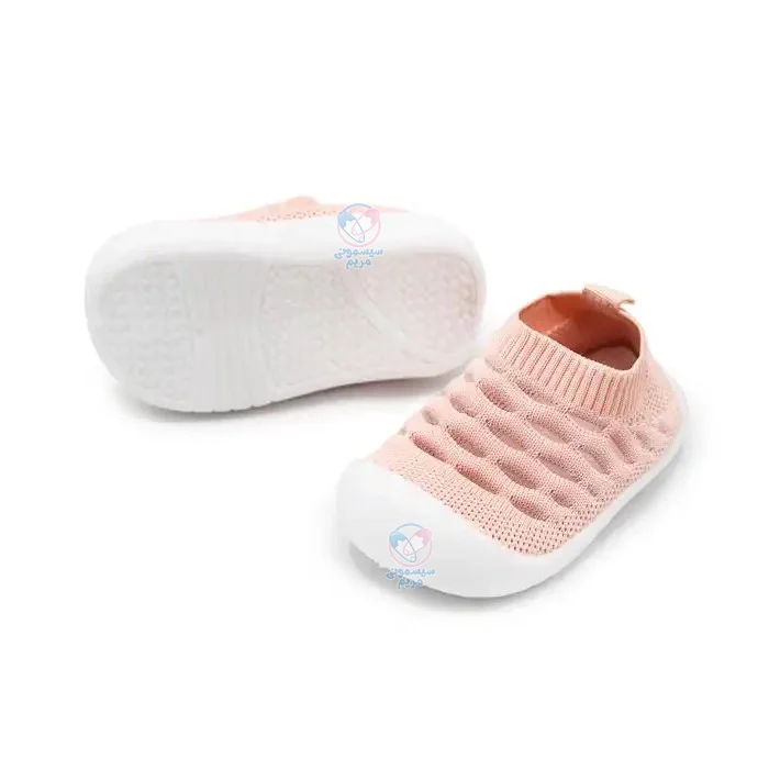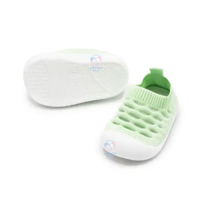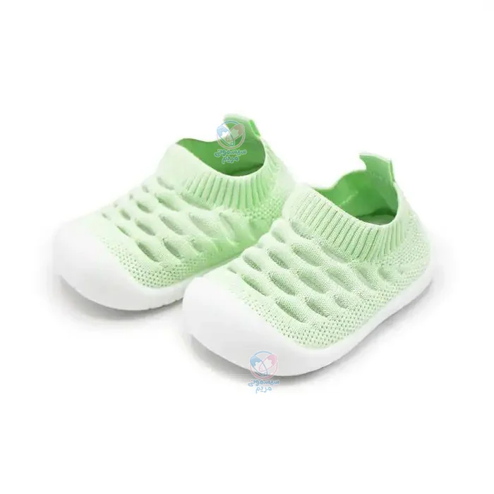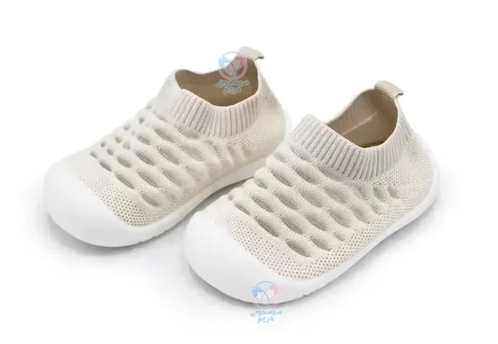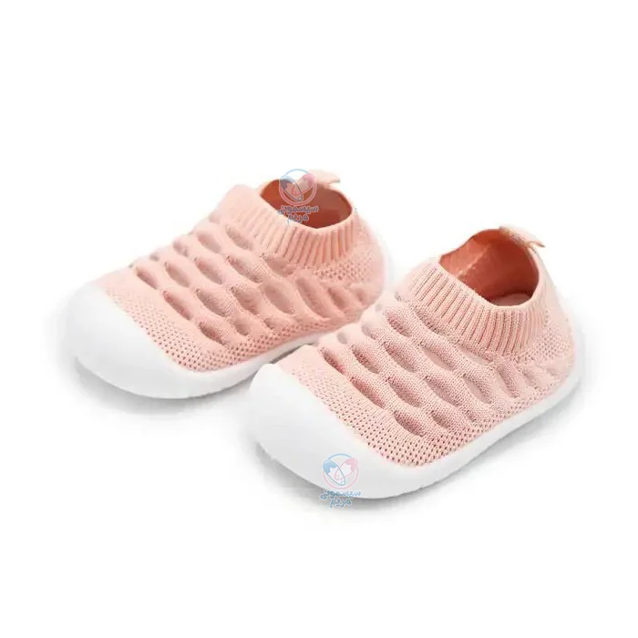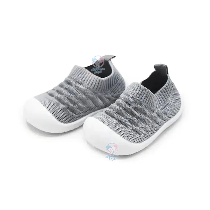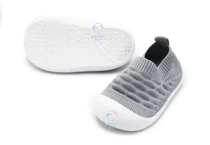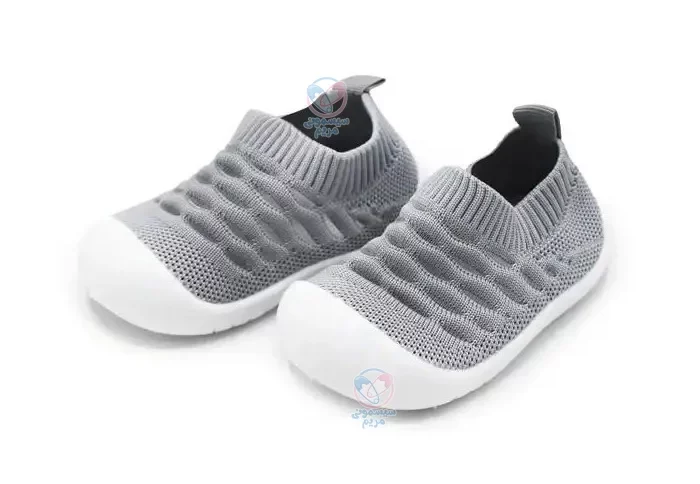 - جنس پارچهای: بخش پارچهای کفشهای جورابی معمولاً از مواد طبیعی یا الیاف مصنوعی نرم و تنفسپذیر تولید میشود. این پارچهها به گونهای انتخاب میشوند که پوست حساس نوزاد را تحریک نکنند و باعث بروز حساسیت یا قرمزی نشوند.
