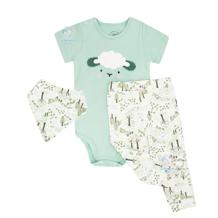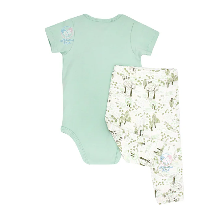 سهتیکه بادی و شلوار طرح ببعی از جنس نخپنبه باکیفیت تهیه شده است که نرمی و راحتی فوقالعادهای را برای کودک فراهم میکند. این محصول در دو رنگ زیبا و ملایم سبز و سفید موجود است که همگی از رنگهای متناسب با فصلهای بهار و تابستان میباشند.