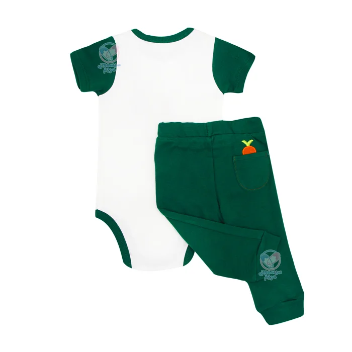سه تیکه بادی و شلوار نیلی Nili طرح بانی 5001 در رنگهای سبز و سفید تولید شده است. این ترکیب رنگ نه تنها زیبا و چشمنواز است، بلکه حالت اسپرت و شادابی را نیز برای کودک به ارمغان میآورد. طراحی این لباس بهگونهای است که برای هر دو جنسیت مناسب است و میتوان آن را بهعنوان یک لباس اسپرت در فصول بهار و تابستان مورد استفاده قرار داد. در ادامه بیشتر با ویژگیهای این محصول آشنا خواهیم شد.