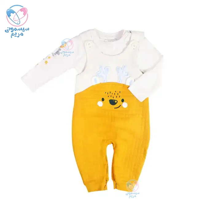 محصول فوق از برند تانگز (Tongs) است. این برند یک برند مطرح در سطح جهان است و به تولید پوشاک نوزاد میپردازد. رمز موفقیت این برند، کیفیت بالا، طراحی نوآورانه و زیبا و قیمت مقرونبهصرفه است. سرهمی پیشبندی طرح گوزن یکی از محصولات این برند است.