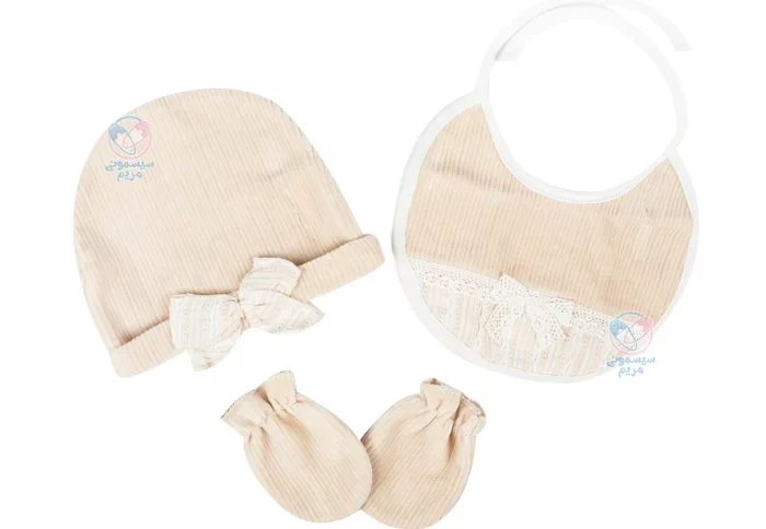 - کلاه لطیف و گرم این ست سر نوزاد را پوشش داده و به حفظ دمای بدن کمک میکند؛