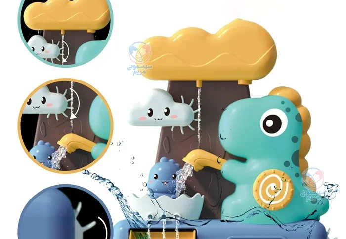 آبریز طرح دایناسور و ابر از پلاستیک باکیفیت و مقاوم تهیه شده است. پلاستیک این اسباببازی ضد حساسیت و فاقد BPA بوده و به پوست حساس و لطیف کودک آسیبی وارد نمیکند.