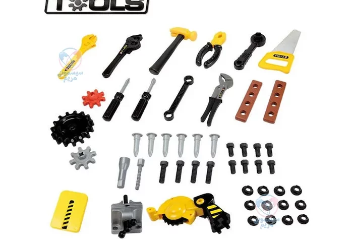 | سایر توضیحات | ساخته شده از پلاستیک درجه یک، شامل ۶۴ قطعه مختلف از وسایل نجاری مانند چکش، آچار، انبردست، ارهدستی، پیچگوشتی، پیچ، مهره، میخ و…،, مناسب برای تقویت مهارتهای حرکتی دست و انگشتان و تقویت هماهنگی چشم و دست |