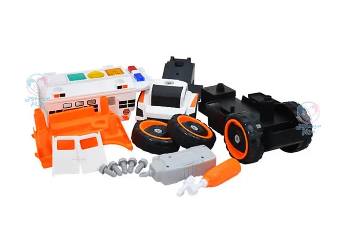 از سوی دیگر در این پکیج، تمامی قطعات خودرو مثل سقف و چرخ ها و… وجود دارد که با ابزارهای موجود (در پشت کامیون که باز و بسته میشود) میتوان آن را باز و سرهم کند و به راحتی بههم متصل شود. این موضوع باعث شده مهارت دست کودک بهبود و افزایش یابد.