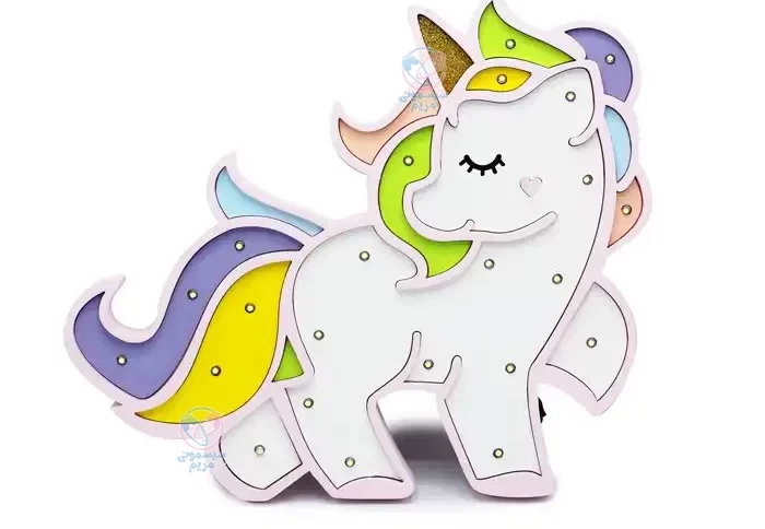 چراخ خواب یونیکورن وزن سبکی دارد و از جنس MDF است. مجهز به لامپ LED بوده که این مدل لامپها بسیار با دوام وکممصرف هستند و نور ملایم و آرامشبخشی به فضای اتاق میدهند.
