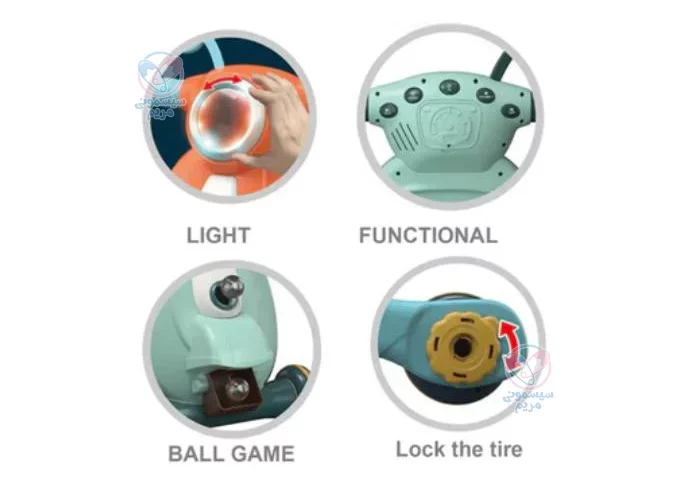 - مجهز به چرخهای ضد لغزش و قفل ترمز برای اطمینان از ایمنی کودک هنگام بازی؛
